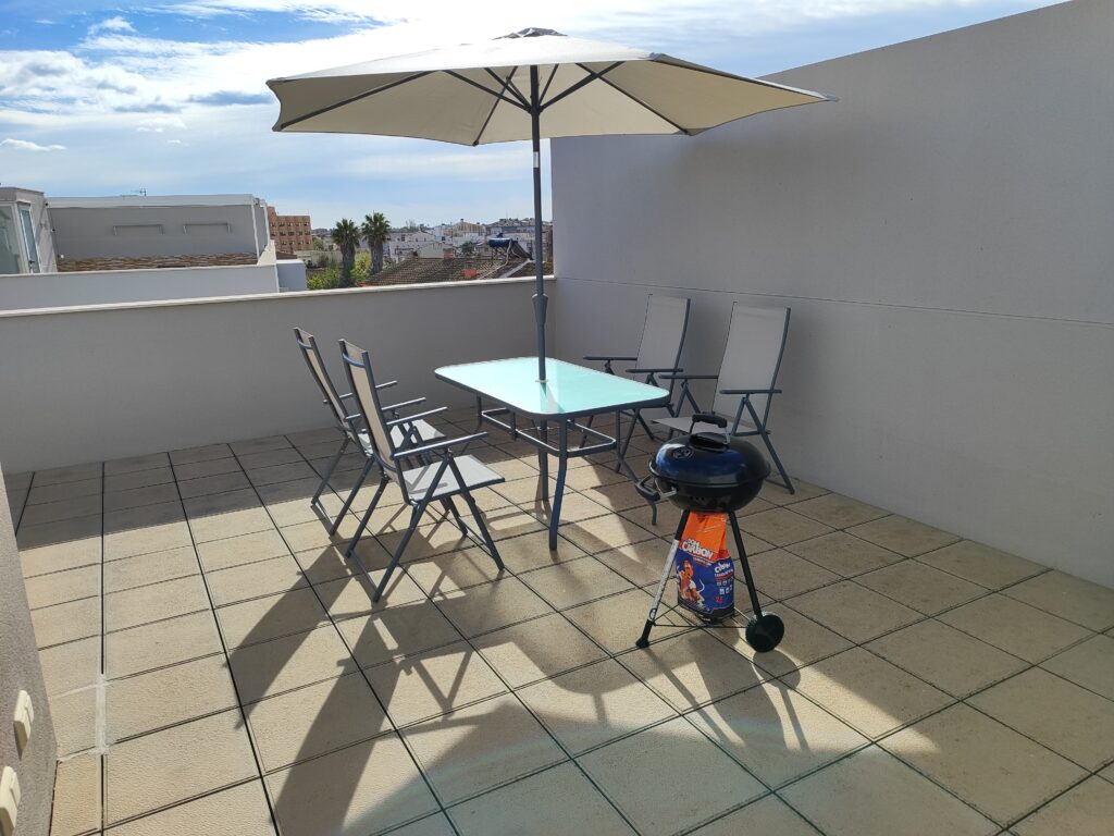 - Terraza privada de 56 m2 con vistas al rio Ebro amueblada con mesa, sillas reclinables, sombrilla, zona chillout, mirador, zona tendedero con galeria, barbacoa, ducha termosolar, etc.